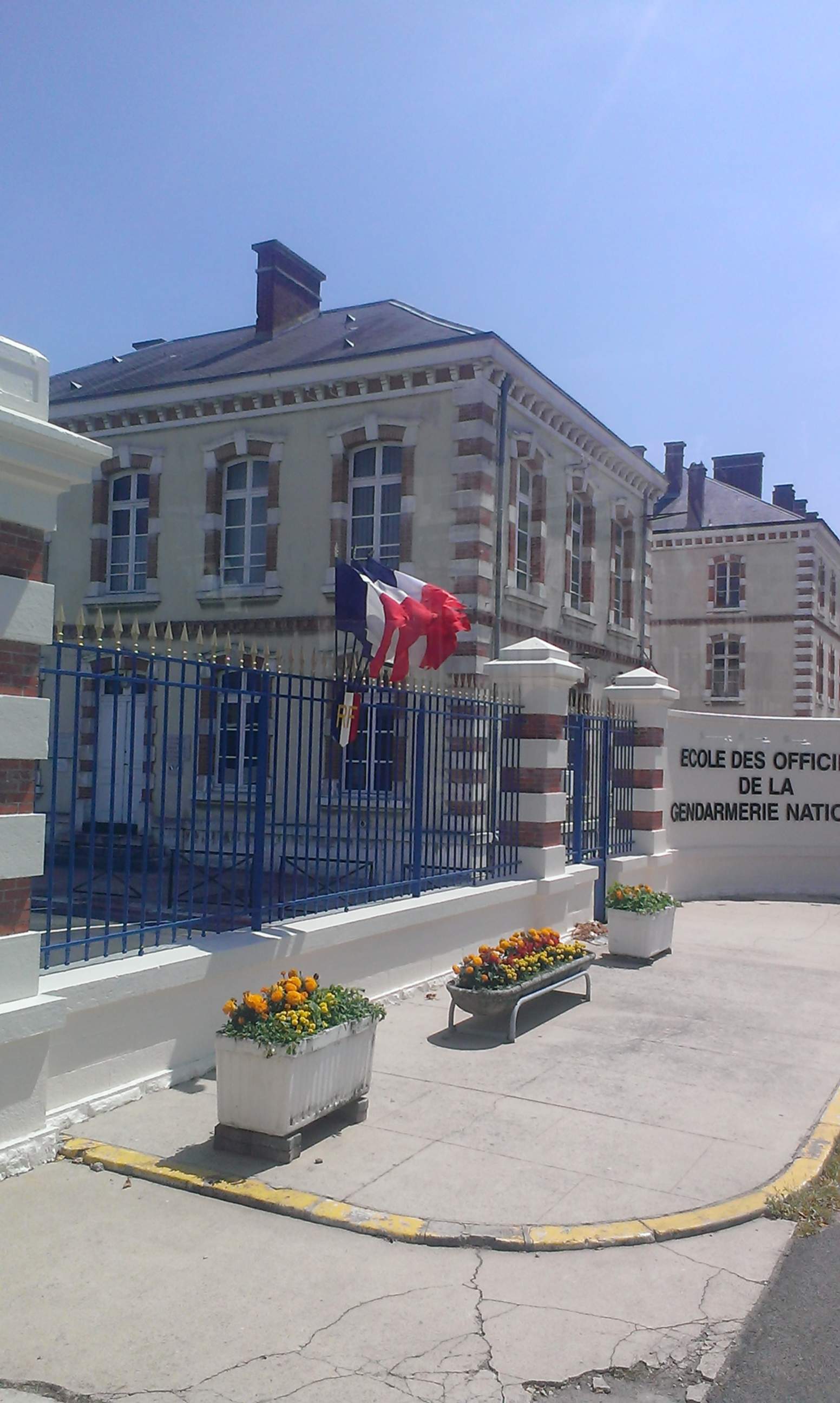Au premier plan à droite, deux élèves-officiers de l'École des officiers de la gendarmerie nationale (EOGN).